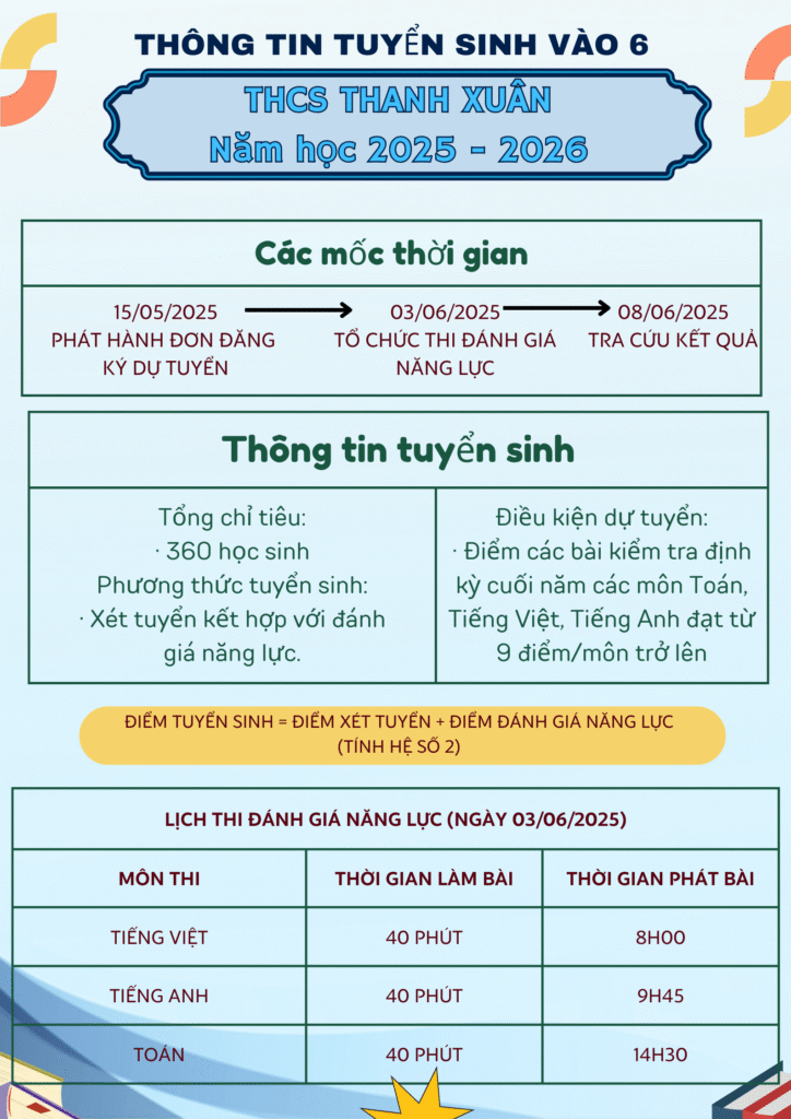 THÔNG TIN TUYỂN SINH VÀO LỚP 6 TRƯỜNG THCS THANH XUÂN NĂM HỌC 2025-2026